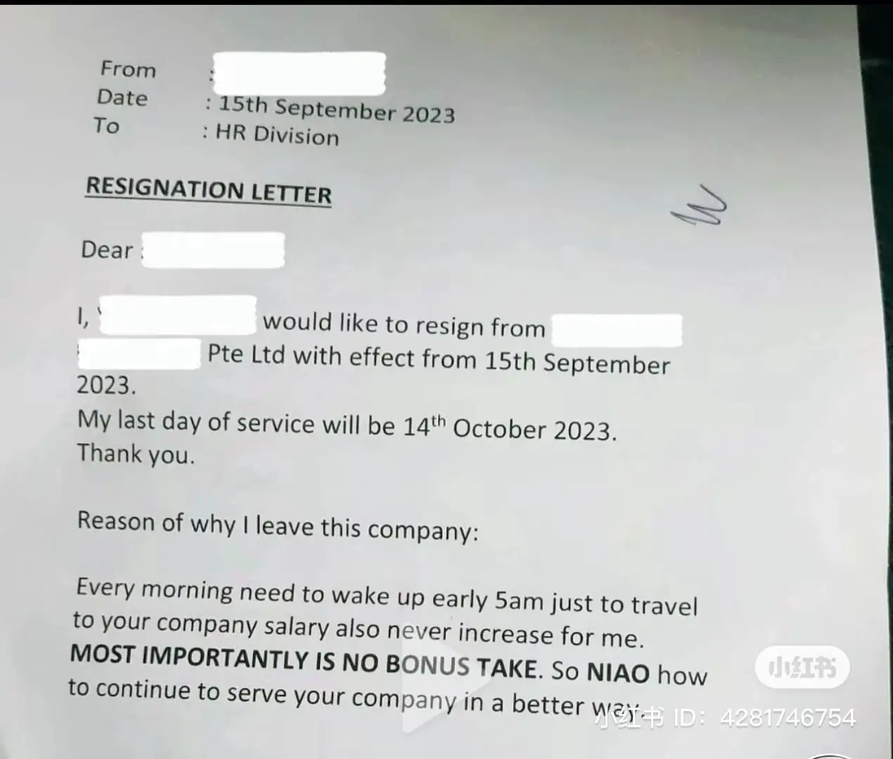 SINGAPORE- A spicy resignation letter peppered with some classic Singlish has made its rounds on social media, garnering quite a bit of attention and applause.