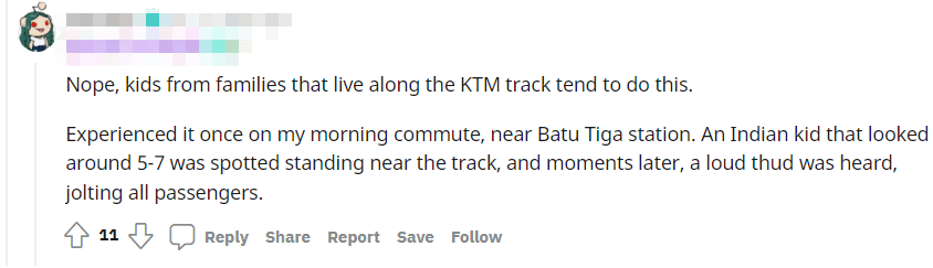 One Redditor claimed that such acts were common among families who lived along the train tracks, saying that she herself had witnessed it firsthand near the Batu Tiga station (pun not intended).