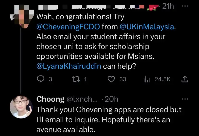 In the comment section, netizens were disheartened by Choong’s story and shared with her several scholarship programs as alternatives.