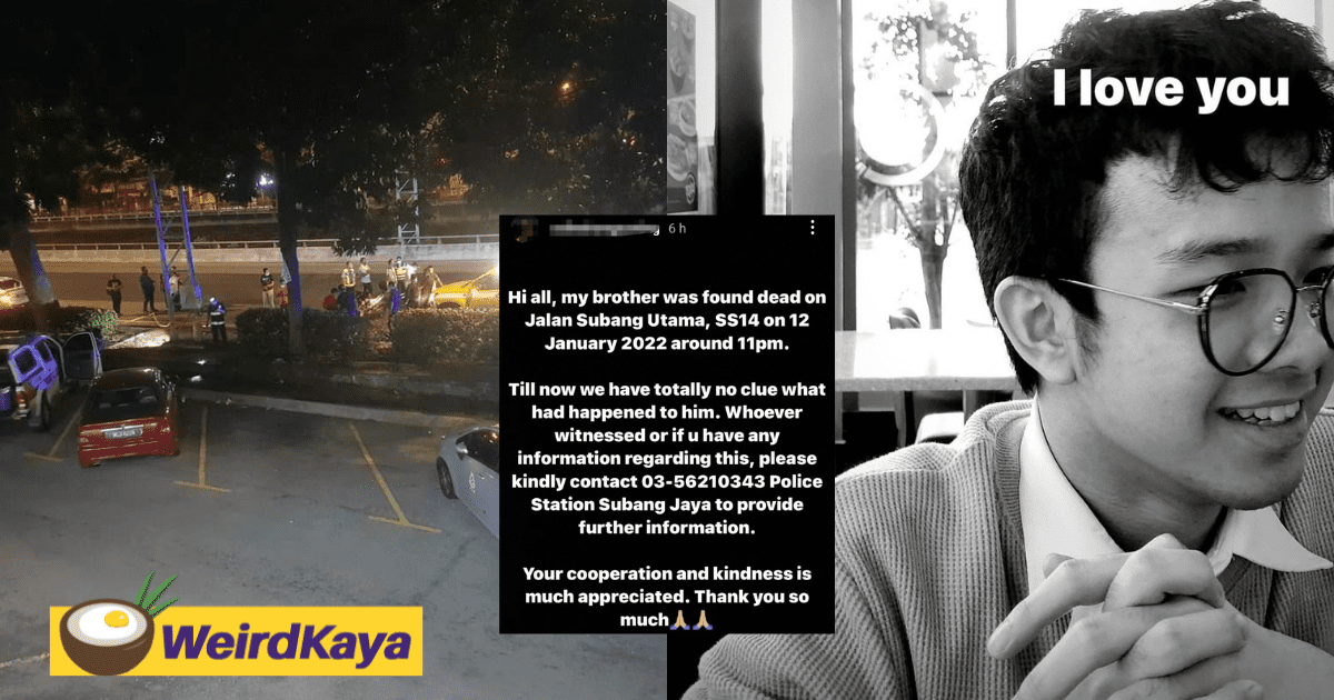 According to her Instagram story, her brother was found dead along Jalan Subang Utama, SS14 at 11pm on Wednesday (Jan 12).