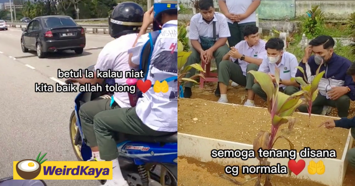 In a video posted by TikTok user @zeemmmm, we can see a group of students riding their motorcycles to their teacher’s grave after completing their final SPM paper.