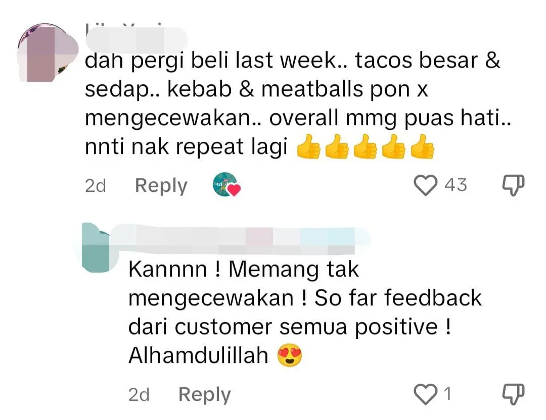 Dah pergi last week, tacos besar & sedap tak mengecewakan, overall memang puas hati, nanti nak repeat lagi.