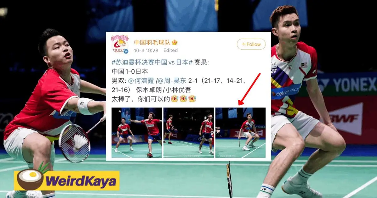 China’s badminton team accidentally uses Aaron Chia/Soh Wooi Yik’s picture to celebrate win on their official account