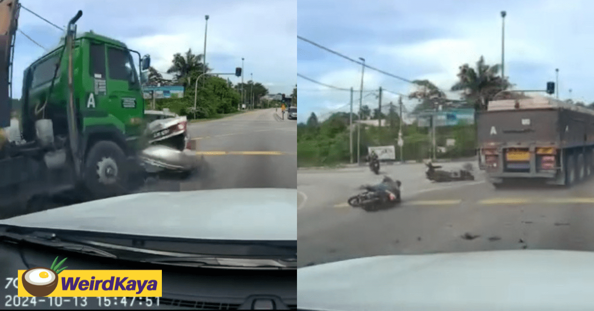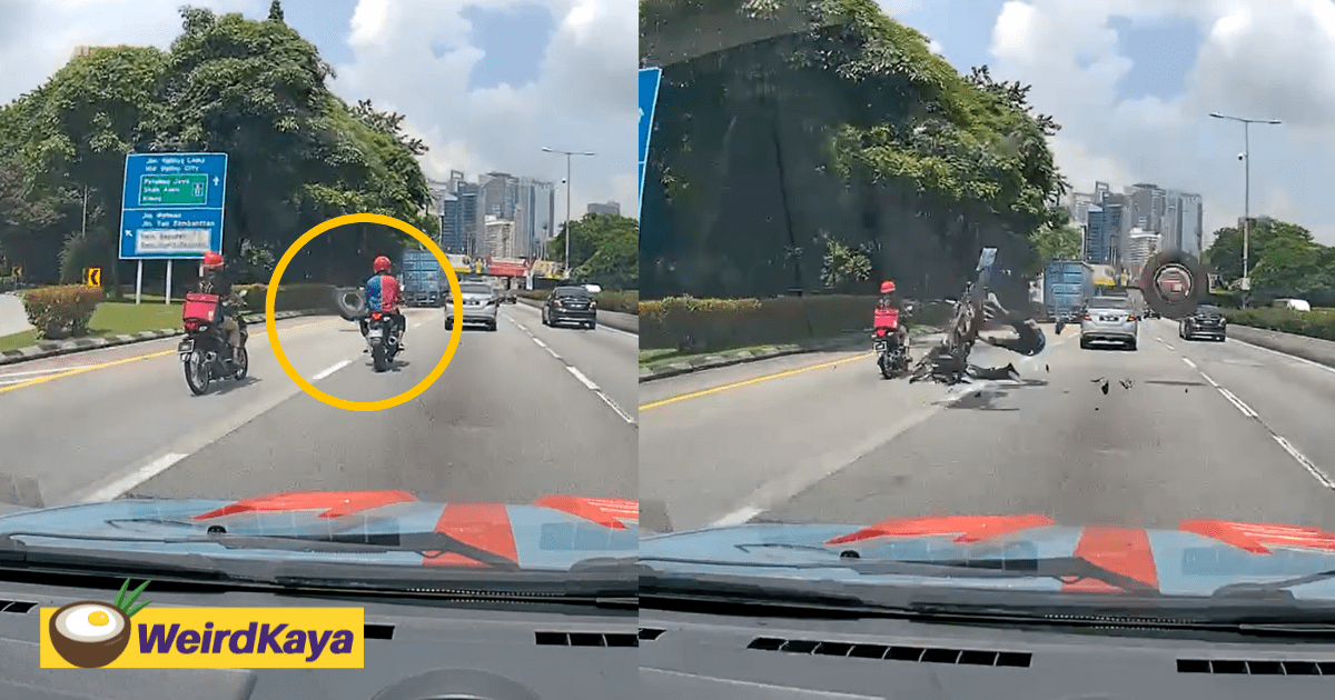 M’sian Man Sent Flying After Lorry Tyre Knocks Into His Motorcycle At Middle Lane