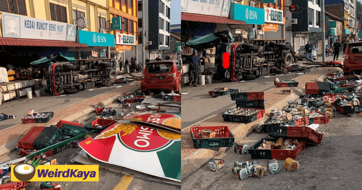 Lorry Carrying Cement Crashes Into Truck At Johor, Bread Sent Scattering Across The Road