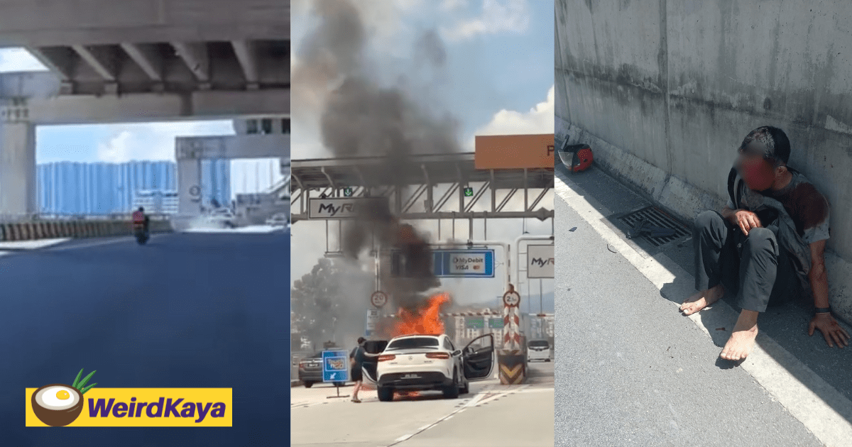 Mercedes Benz Catches Fire, Motorcyclist Injured In Hit-And-Run At Wangsa Maju Toll Plaza