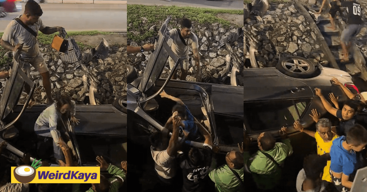 M’sians Of All Races Work Together To Rescue Trapped Passengers Of Overturned Car In PJ