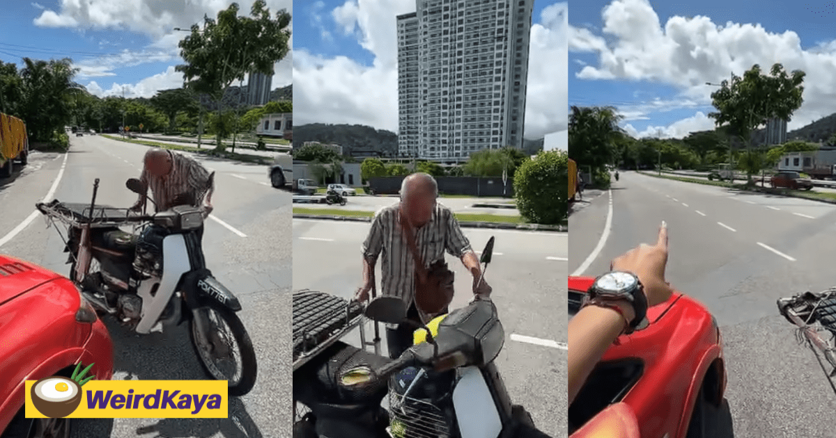 Penang Uncle Hits Car While Riding Against Traffic, Argues With Driver Before Leaving