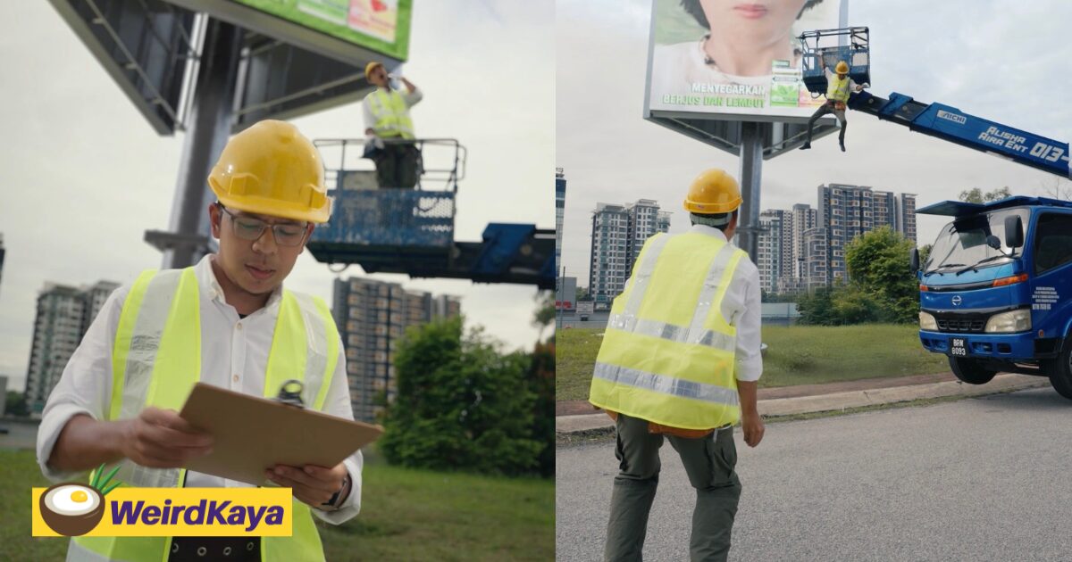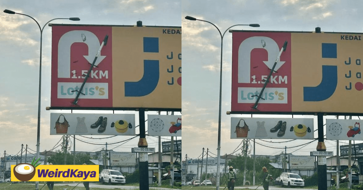 ‘How Did It Get Up There?’ – M’sians Puzzled To See Metal Pole Impale Through Billboard At Rawang