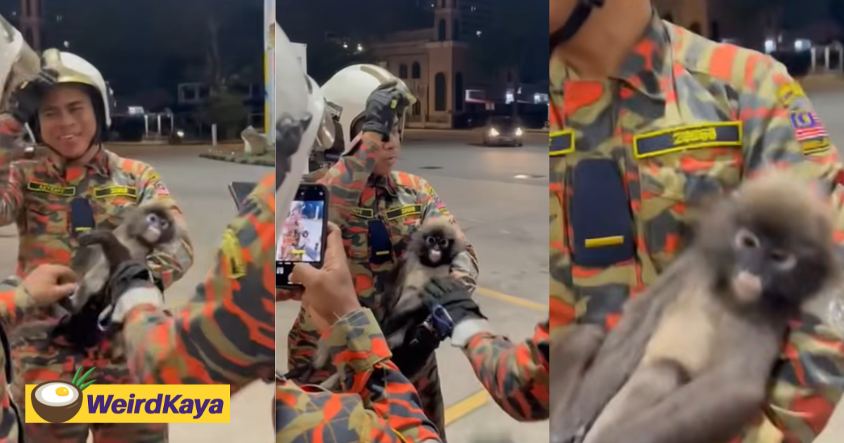 Penang Firefighters Can’t Help But Adore Calm Dusky Leaf Monkey That Was Rescued At Petrol Station