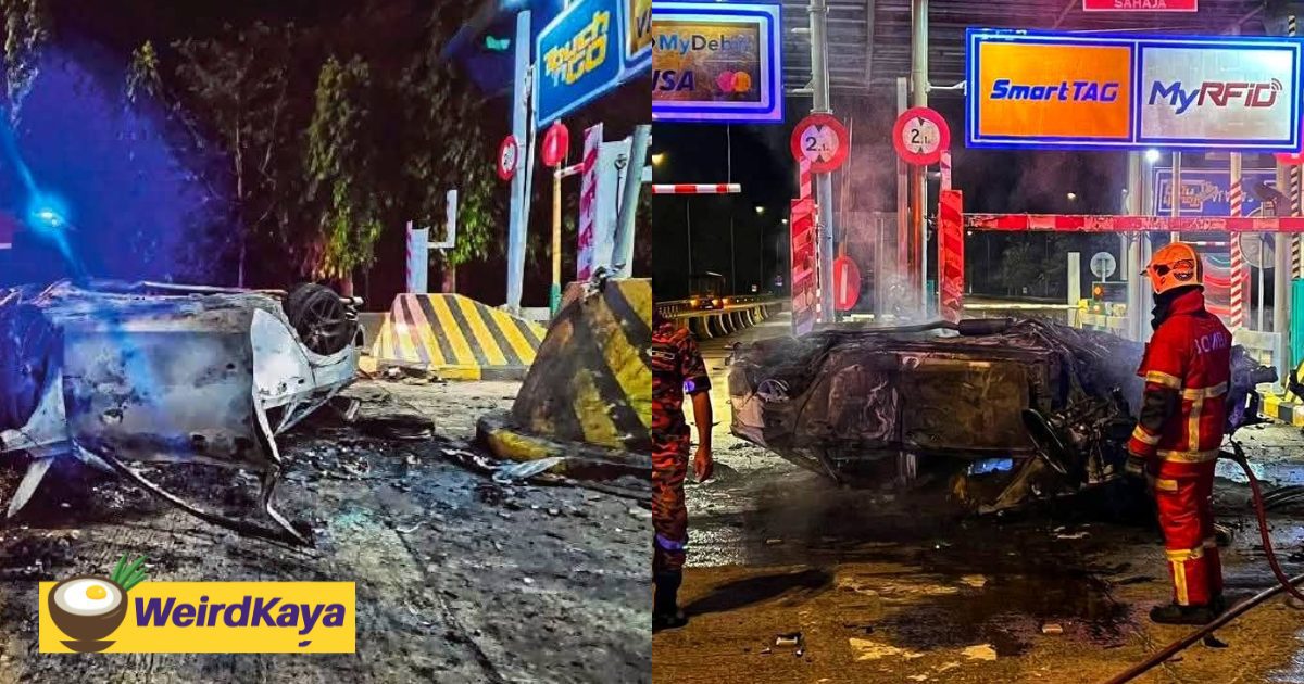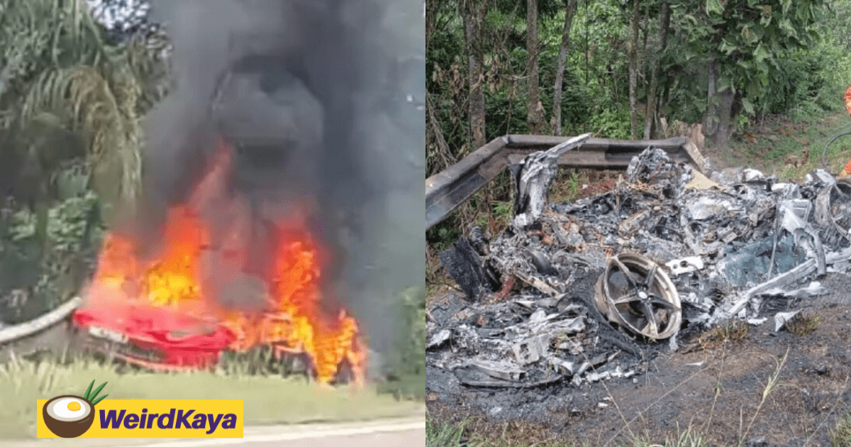 S’pore Driver Crashes Ferrari Into Barrier In Pahang, Car Bursts Into Flames