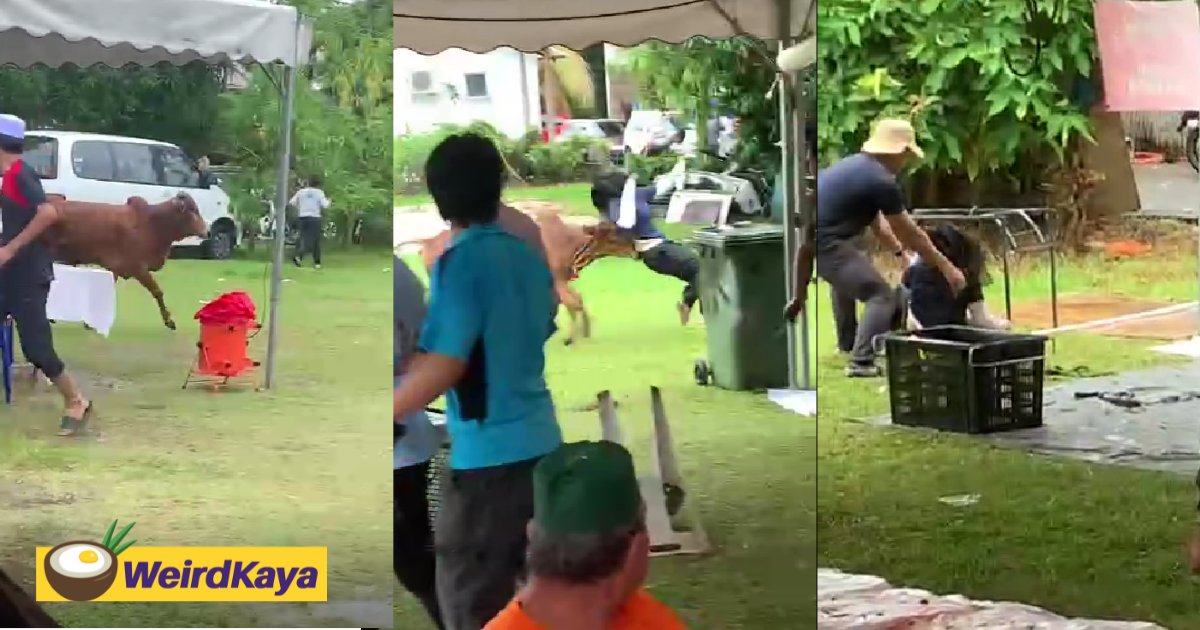 Cow Escapes During Hari Raya Haji, Knocks Girl Off Her Feet While Running Away