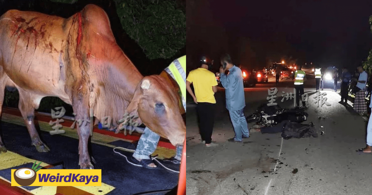 Cow Survives After Getting Hit By Car And Motorcycle In Kedah, But Motorcyclist Passes Away