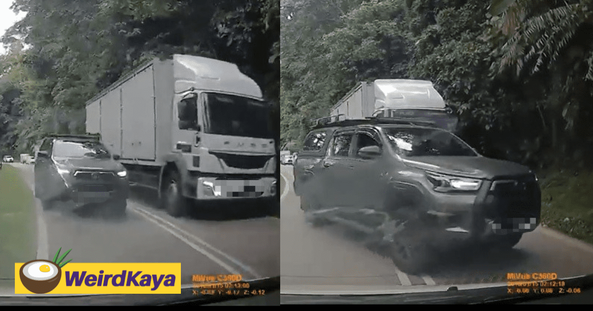 [VIDEO] “I have a kid behind!” — Pick-up truck tries to overtake lorry and nearly causes a collision