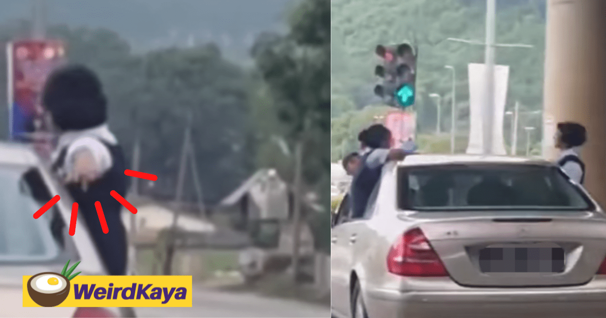 [VIDEO] Three schoolchildren spotted sticking themselves out from car window