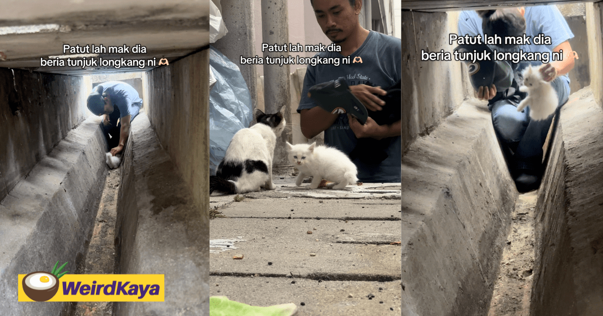 M’sian Men Rescue Kitten After Desperate Mama Cat Leads Them To Drain