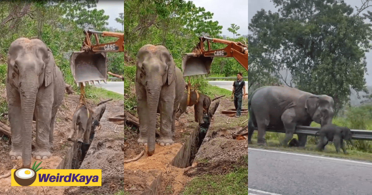 M’sians Save Baby Elephant Stuck Inside Drain While Its Mother Calmly Looks On
