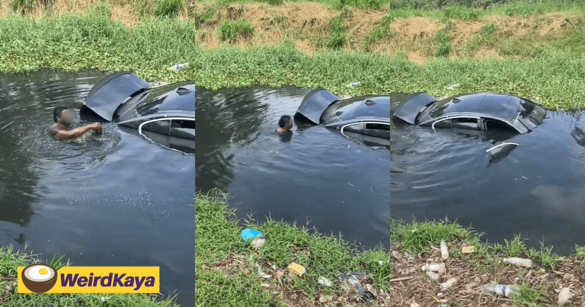 11yo Boy Takes Car For Joyride While Mum Was At The Toilet, Drives It Into Drain In Klang