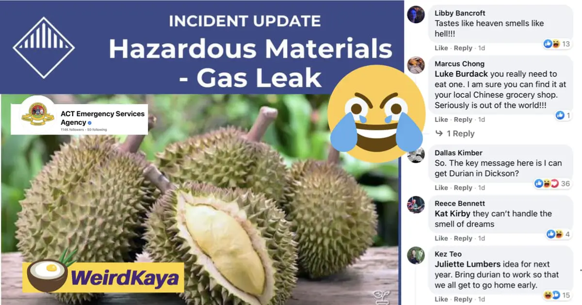 Australian firefighters dispatched to locate gas leak, only to discover durian as the culprit