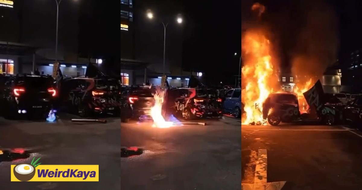 King Myvi Catches Fire After Flaming Exhaust Stunt Gone Wrong During Car Show At Klang Mall