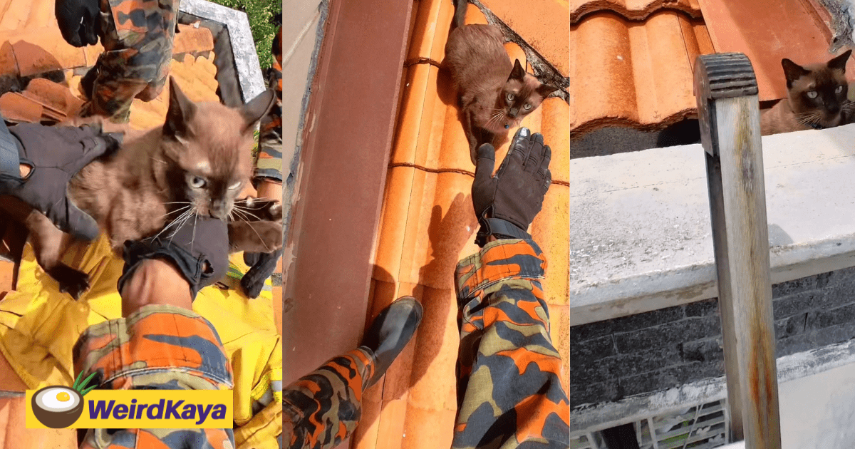 M’sian Firefighters Save 3 Mischievous Cats That Tried to Run Away from Home At A High-Rise Building
