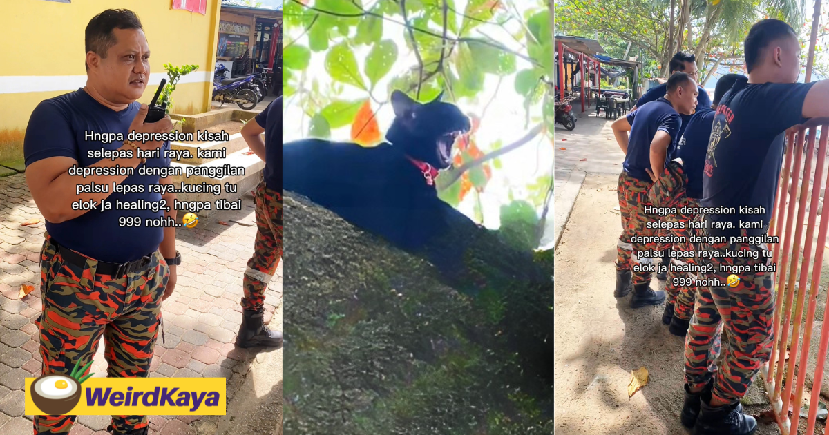 M’sian Firefighters Rush To Rescue Cat Stuck In Tree Only To Find It Chilling By The Beach