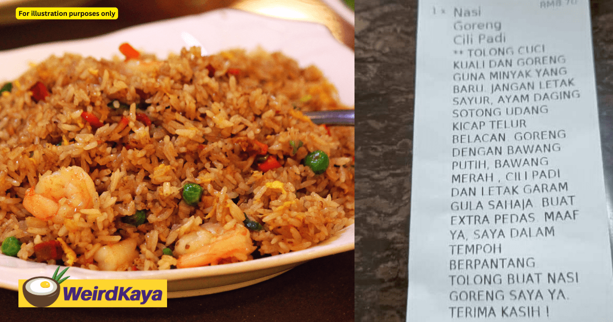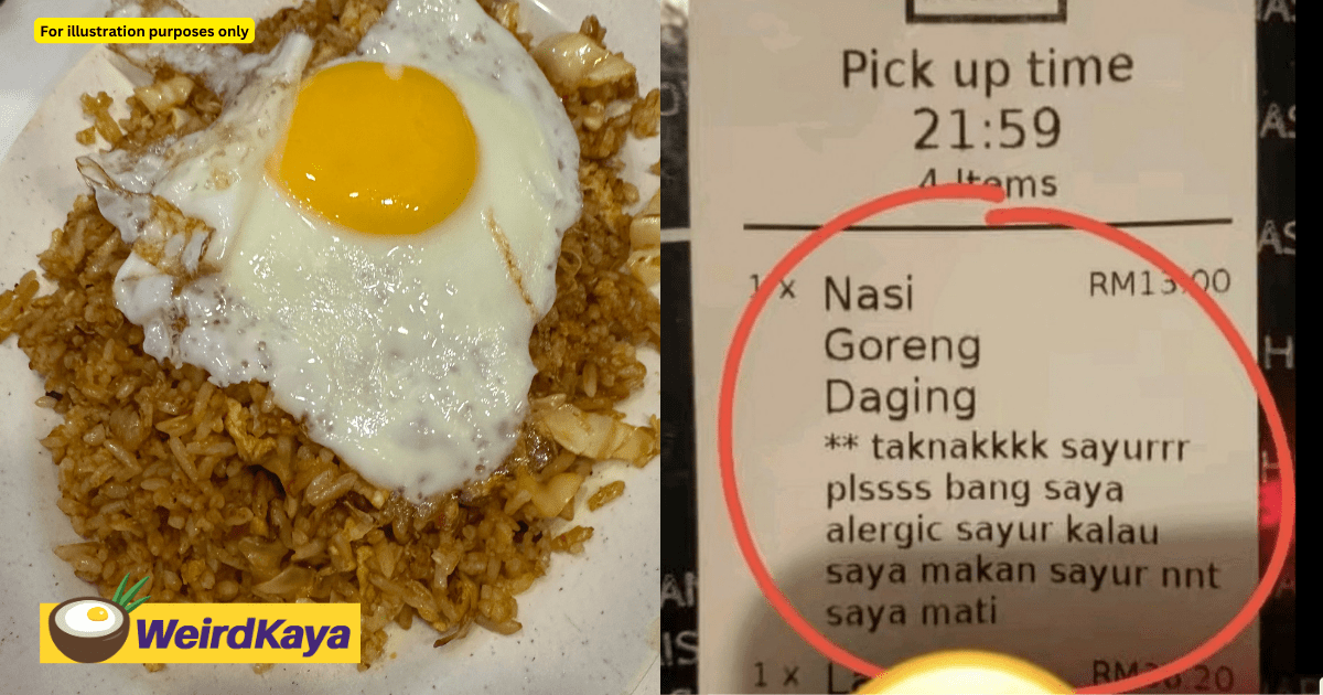 “If I Eat Them, I Will Die” – M’sian Customer Wittily Requests Veggie-Free Fried Rice In Order Note