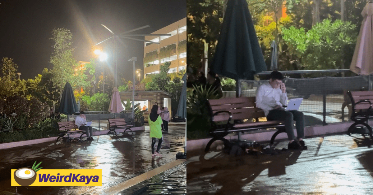 M’sian Man Heads Straight To Water Park After Work, But Urgent Email Keeps Him Glued To Laptop