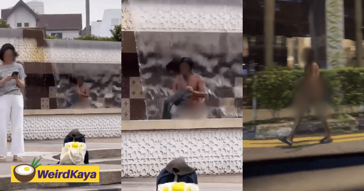 Homeless Man Caught Showering Inside Fountain While Stark Naked In KL