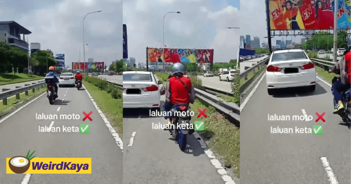 Driver carelessly enters the motorcycle lane, posing a serious threat to motorcyclists.