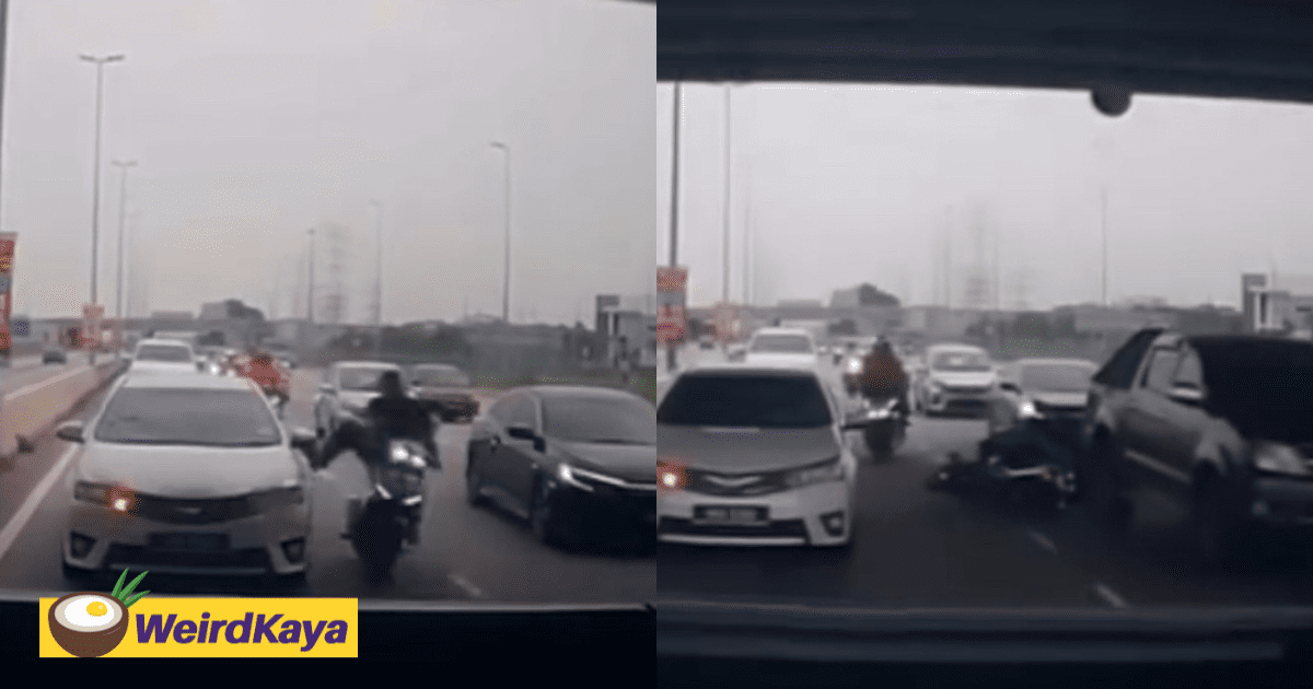 M’sian Man Kicks Car Out Of Anger, Ends Up Falling Off Motorcycle Himself