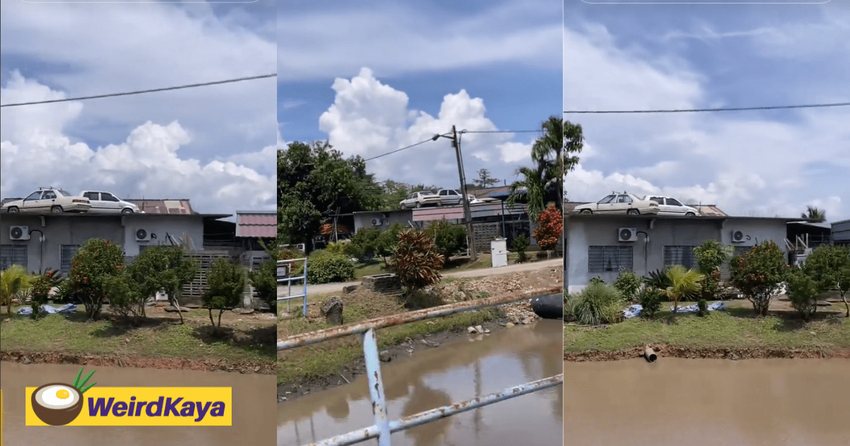 M’sians Stunned To See Kancil And Saga Parked On Top Of House Roof In Kedah