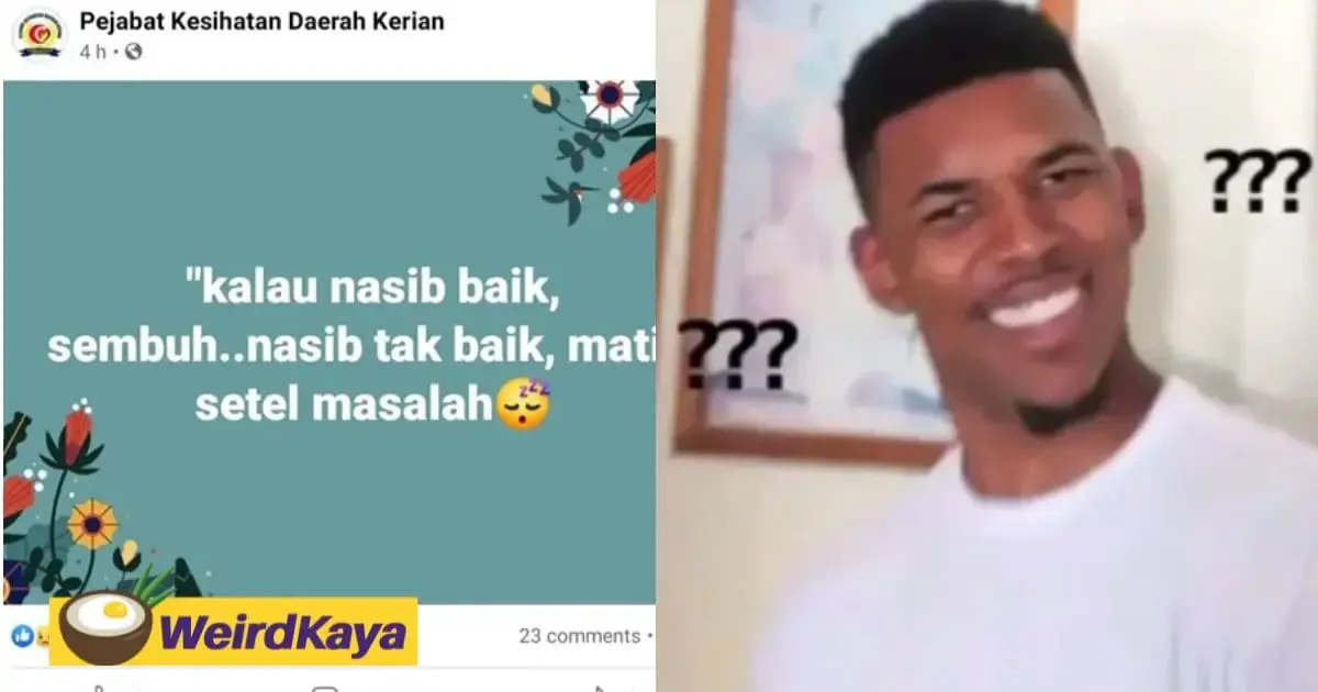 PARIT BUNTAR – “If you’re lucky, you will recover; if not, you’ll die and your problem’s settled.” These were the words written by the Kerian Health District Office (Pejabat Kesihatan Daerah Kerian) on its official…