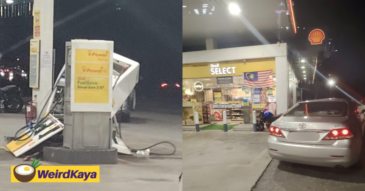 Driver Of SG-Registered Car Drives Off With Fuel Nozzle Still Attached, Severely Damages Johor Fuel Pump