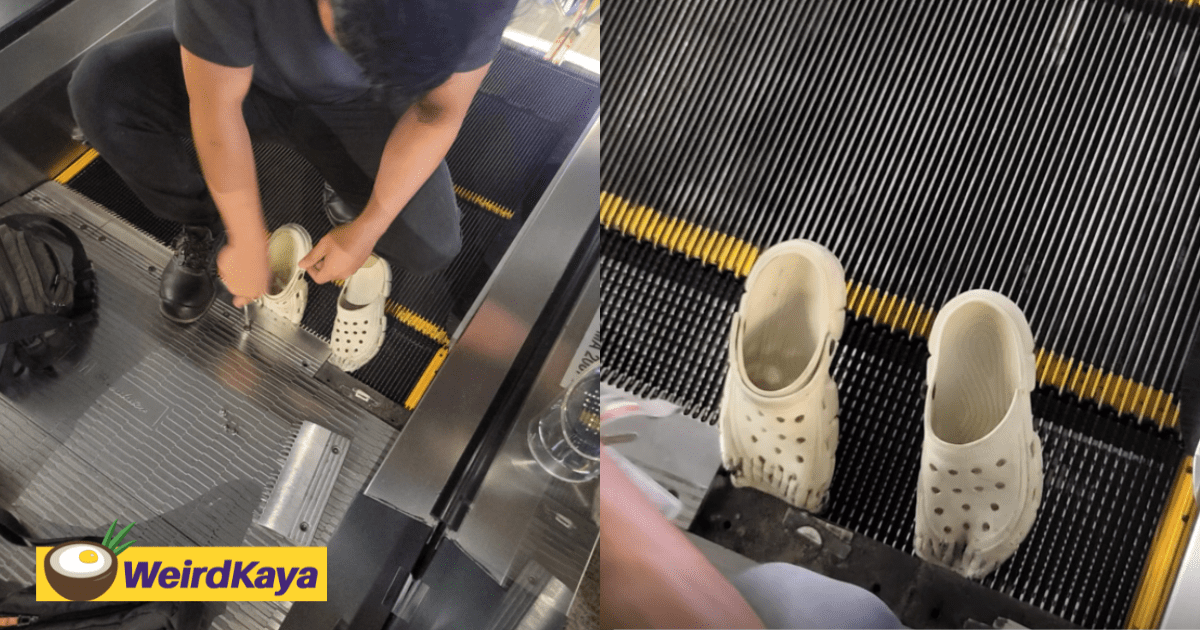 Crocs Shoes Gets Stuck Within Escalator Again At M’sian Mall, Staff Struggle To Get It Out