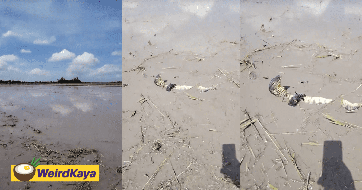 “Is It Dead Or Just Vibing?”– M’sians Crack Up Over Monitor Lizard Chilling In The Mud