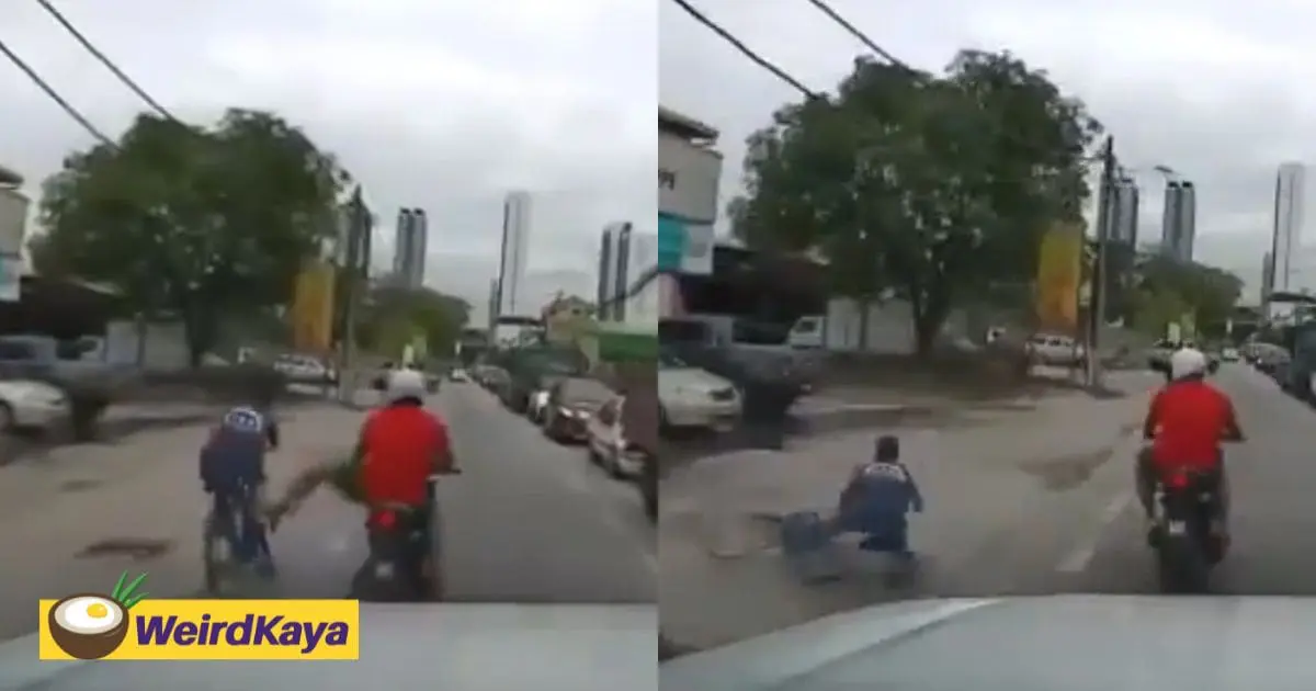 2 M’sian Riders Seen ‘Towing’ Motorbike With Their Feet, Gets Slammed By Netizens