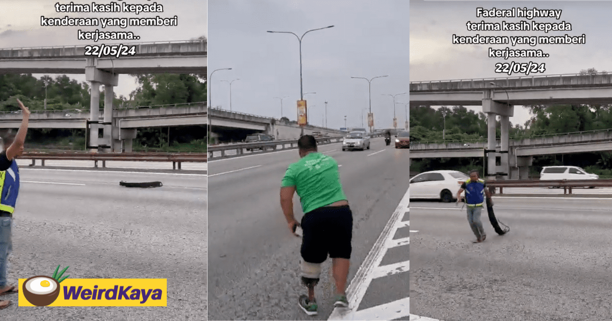 Two M’sians Brave Busy Highway to Remove Debris, One with Prosthetic Leg