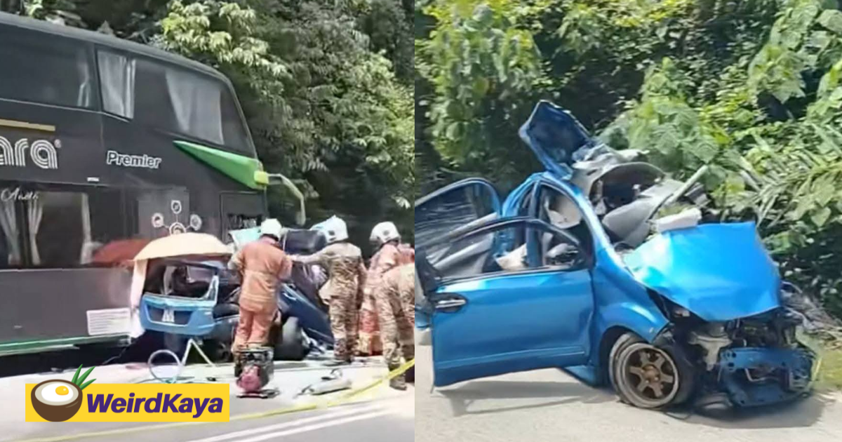 The Myvi had collided head-on with the express bus.