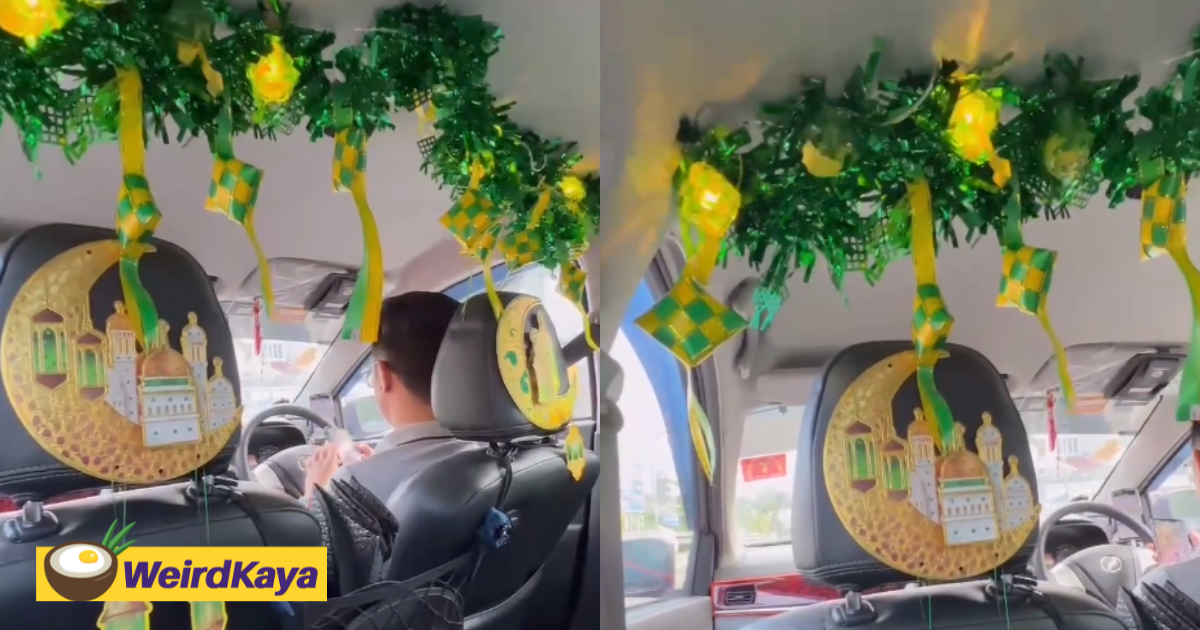 M’sian E-hailing Driver Goes All Out By Decorating Car Interior With Raya Decor & Netizens Are Loving It