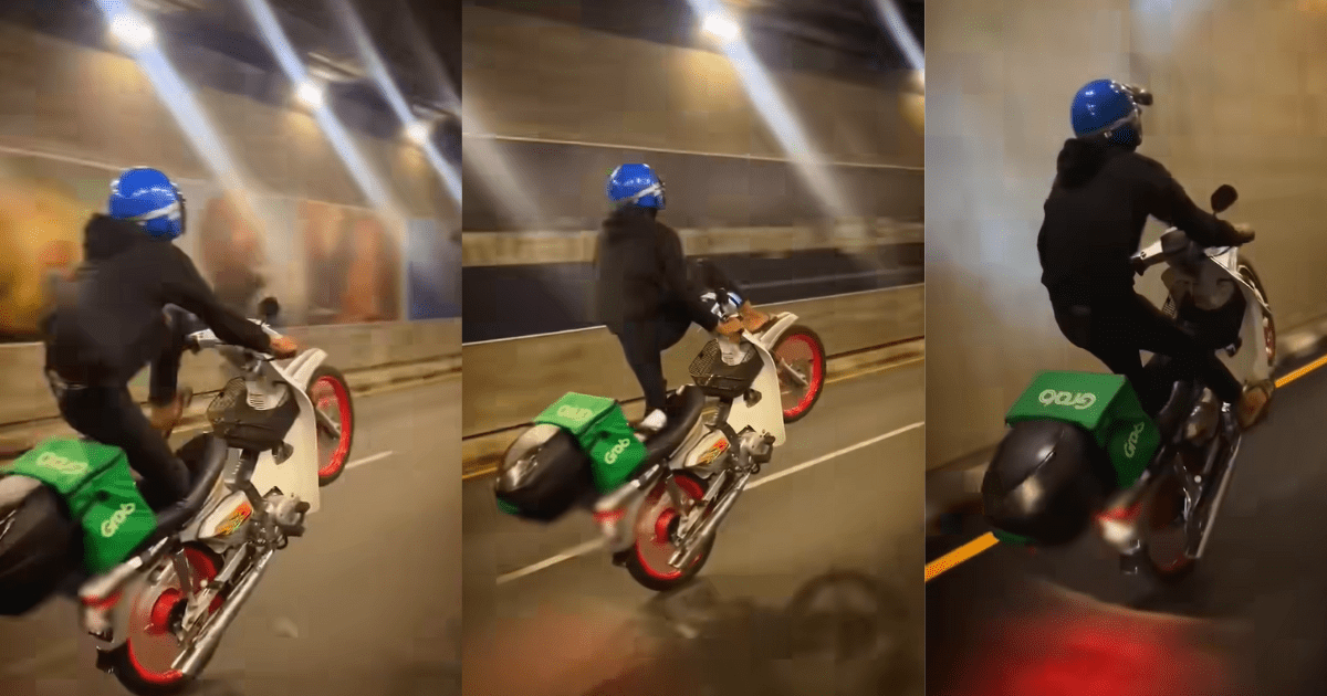 M’sian Delivery Rider Does ‘Wheelie’ Stunt On The Road, Netizens Joke He Should Work At The Circus