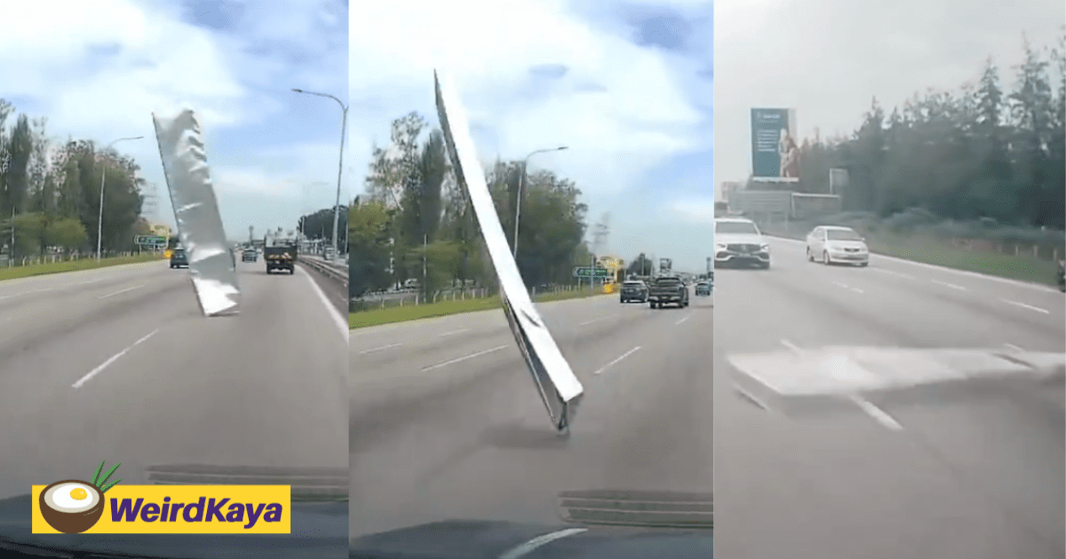 Signboard Flies Off Lorry Along Highway, Narrowly Hits Car Behind