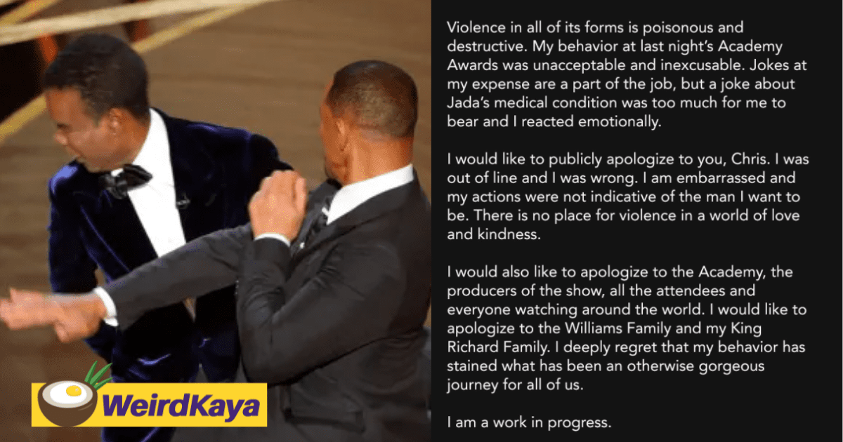 Will Smith apologizes for slapping Chris Rock, calls his behavior “unacceptable”