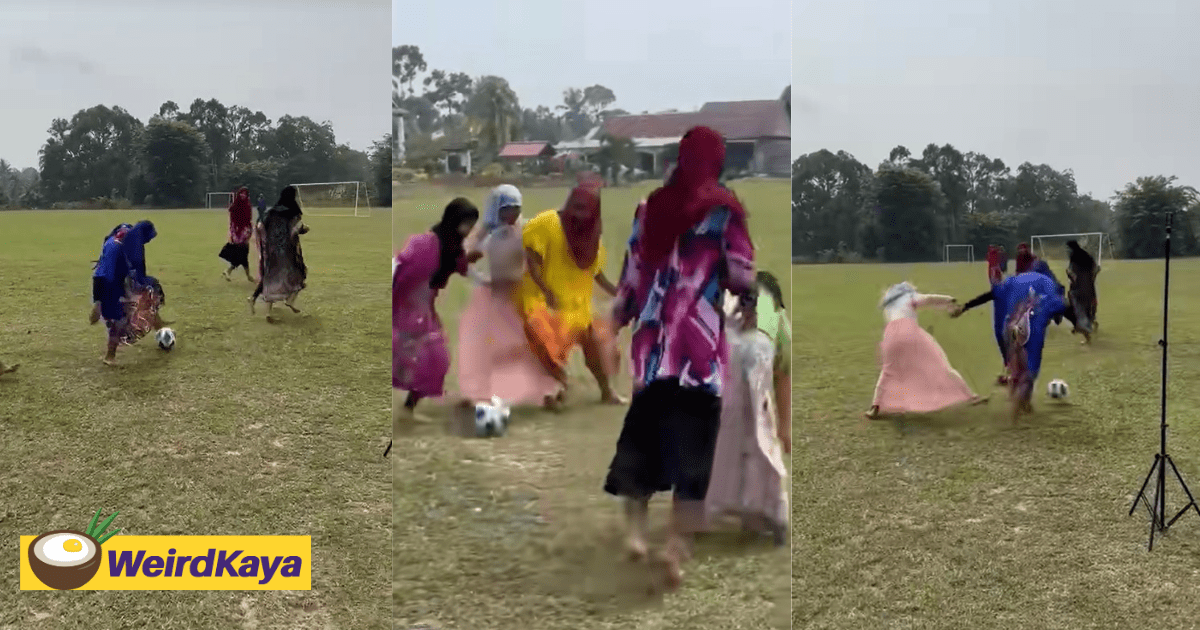 Viral Clip Shows Group Of M’sian Men Playing Football While Dressed In Baju Kelawar And Tudungs