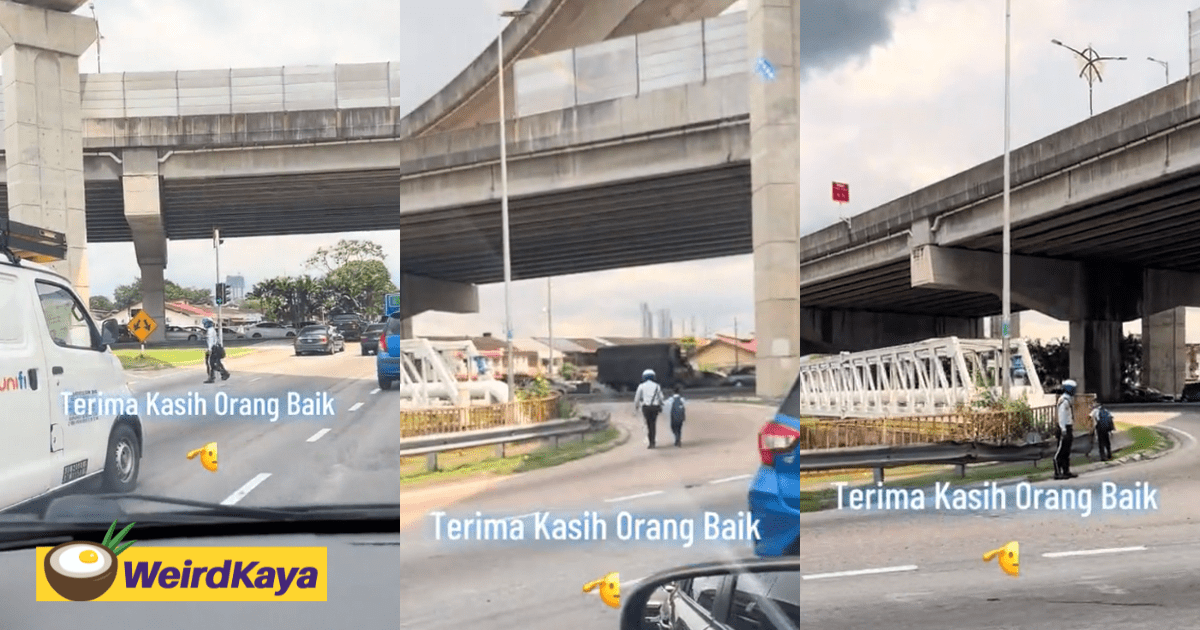 M’sians Traffic Police Seen Holding Student’s Hand While Crossing Road, Melts Netizens’ Heart
