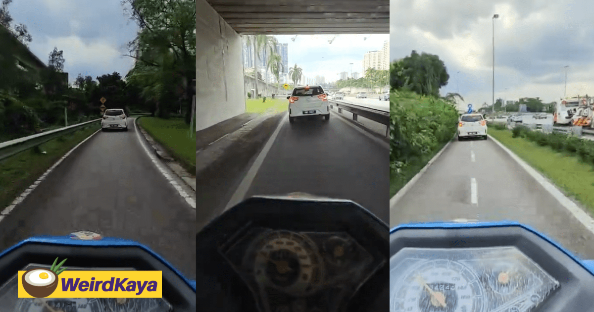 Myvi Drives On Motorcycle Lane To Skip Toll, Gets Stopped By Highway Staff
