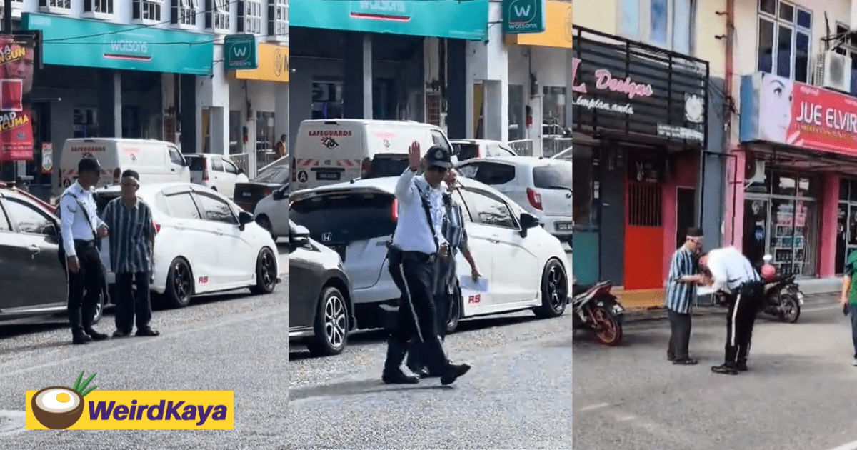 M’sian Traffic Police Praised For Helping Old Man Cross The Road & Showing Good Manners
