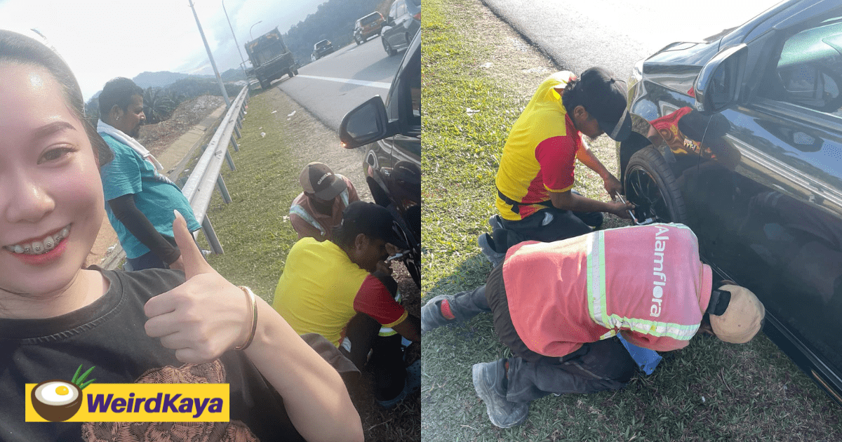 M’sian Woman Grateful To See Alam Flora Staff Stop To Help Change Her Tyre Along The Highway