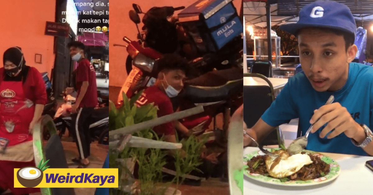 Man who is partially vaxxed sits outside food stall while watching his friends dine-in