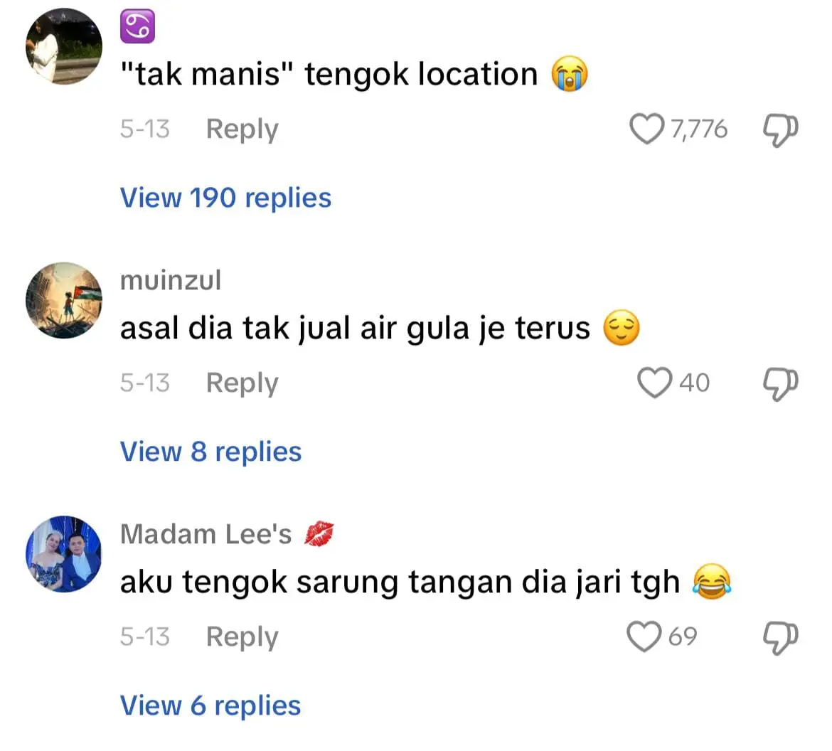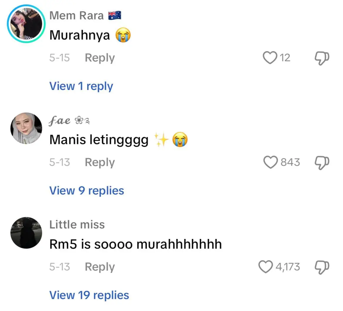 Meninjau ke ruangan komen, warganet berseloroh meneka kemanisan air lova dari Kelantan ini dan ada juga yang terkejut melihat harganya yang murah iaitu hanya RM5 secawan.